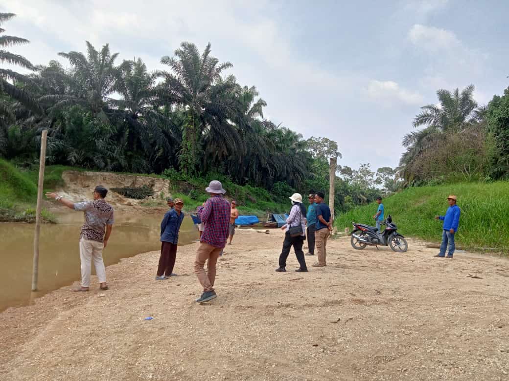 Kepala Desa bersama Tim DLHK dan warga melakukan pengcekan air sungai