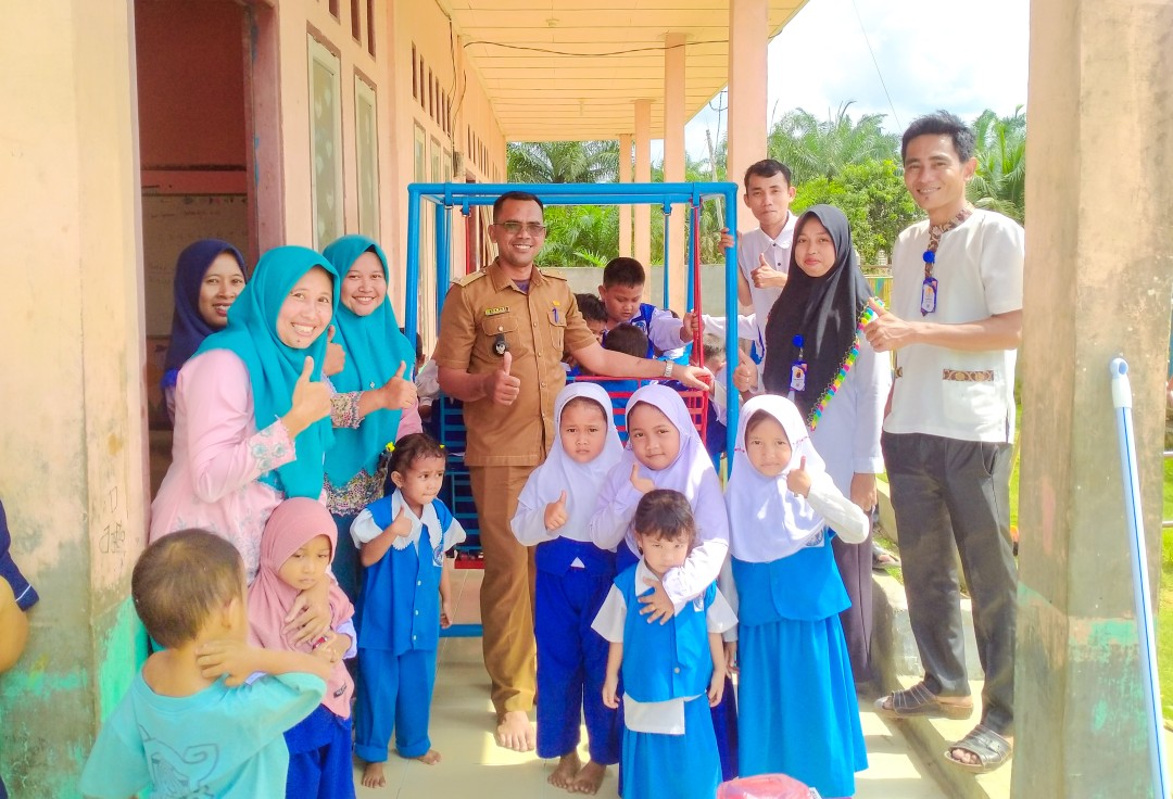 Pemerintah Desa Sekayan bersama Guru dan Murid PAUD Permata didepan Ayunan Baru